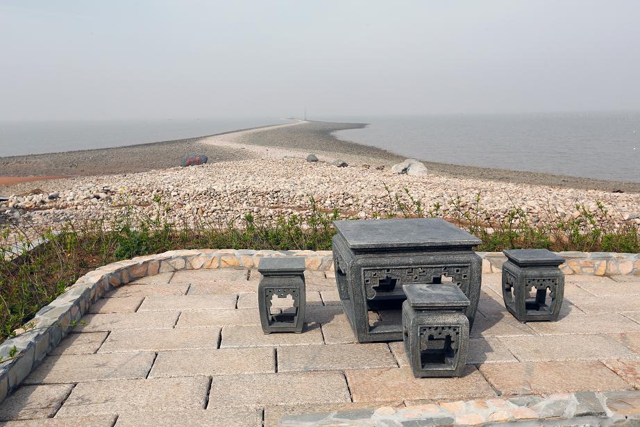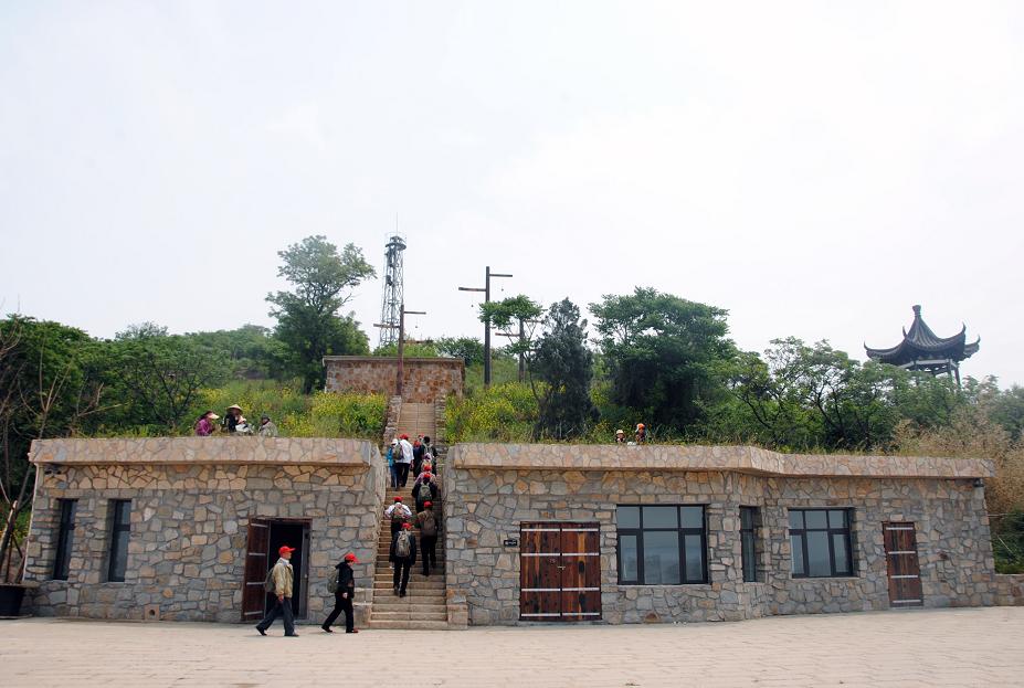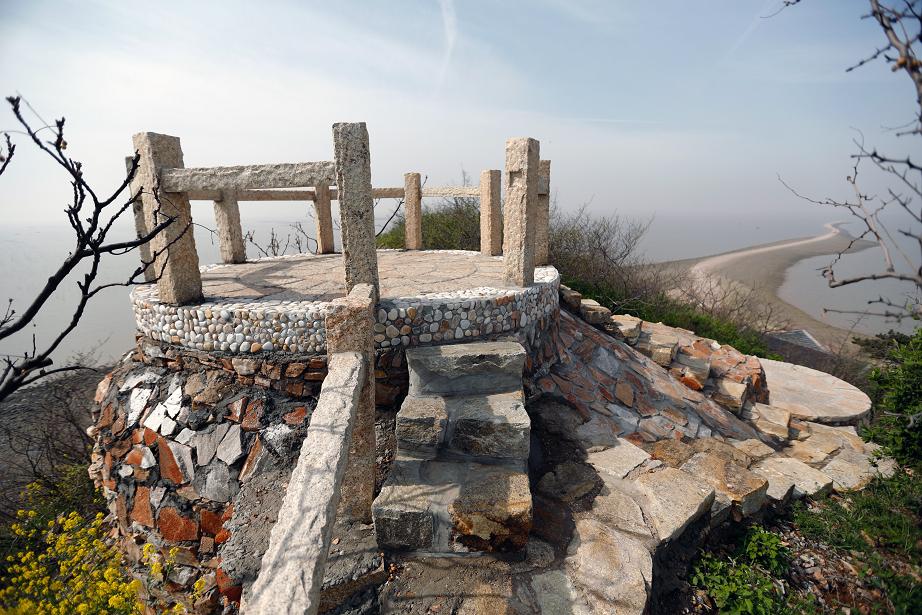 此景原為神路廣場頂部軍事眺臺,設計在其頂部設置石頭欄桿,供游客登高眺望。晴朗之日可觀贛榆區(qū)新城。