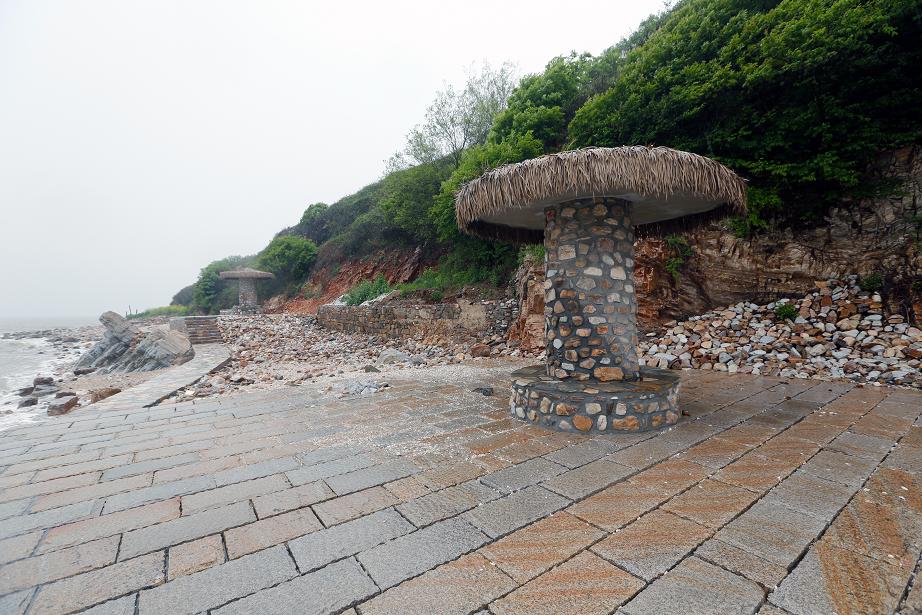神路廣場北側休息平臺,原為破損漁民生產用房。設計保留房子基礎,改造成觀景平臺,平臺上設計休憩構架。